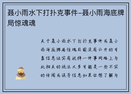 聂小雨水下打扑克事件-聂小雨海底牌局惊魂魂