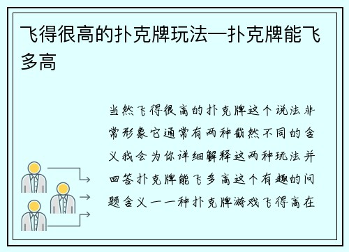 飞得很高的扑克牌玩法—扑克牌能飞多高